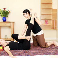 Dynamic Thai stretching to open the tight network of lower leg muscles.